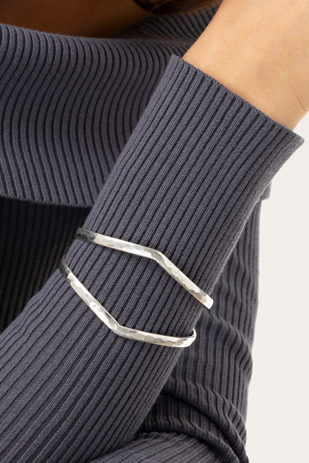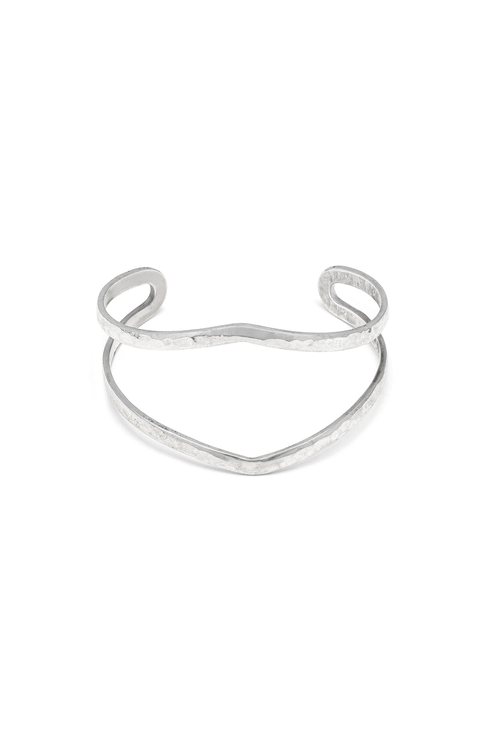Un bangle dal design architettonico composto da linee aperte che si muovono in armonia sul polso. Un accessorio fashion-forward, essenziale ma di carattere, perfetto per completare look minimali o tailoring strutturati. Diametro 6 cm. Materiale: placcatura argento 100% artigianale. Nickel tested. Lavorazione artigianale. Gioielli fatti a mano, unici e artigianali, perfetti per tutti i tuoi look o come idea regalo.