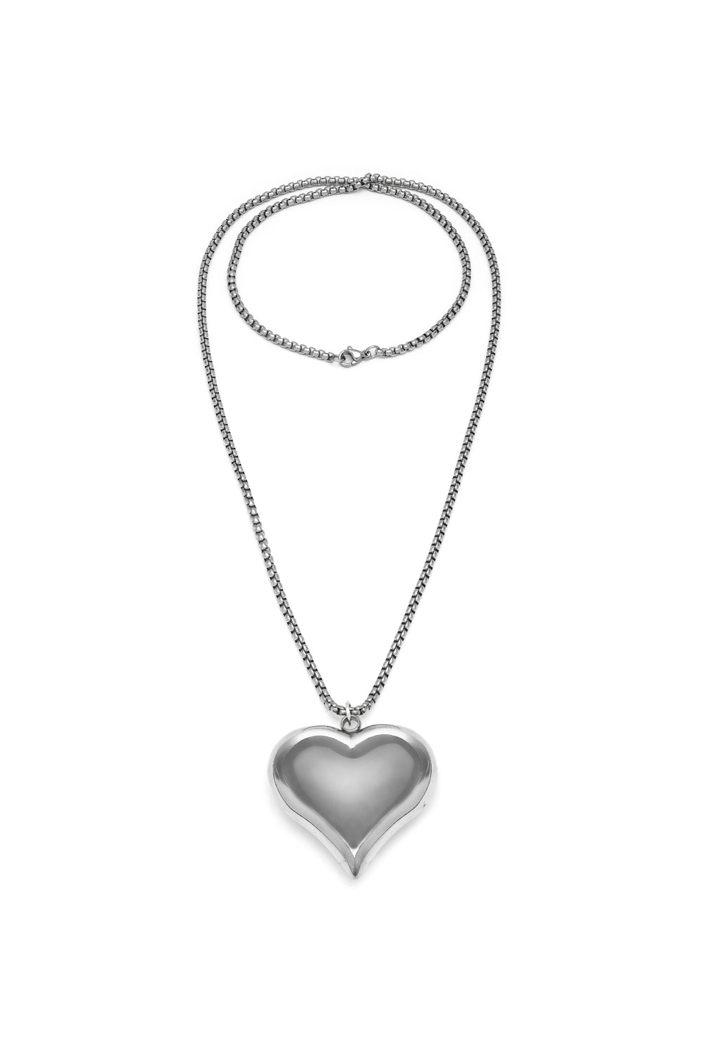 Volume maxi, texture smooth e forma bold. Il pendente cuore in acciaio è un gioiello iconico dal carattere deciso, capace di valorizzare tutti i tuoi look con un solo gesto. Lunghezza collana 70 cm. Materiale: acciaio inossidabile. Nickel tested. Lavorazione artigianale. Gioielli fatti a mano, unici e artigianali, perfetti per tutti i tuoi look o come idea regalo.