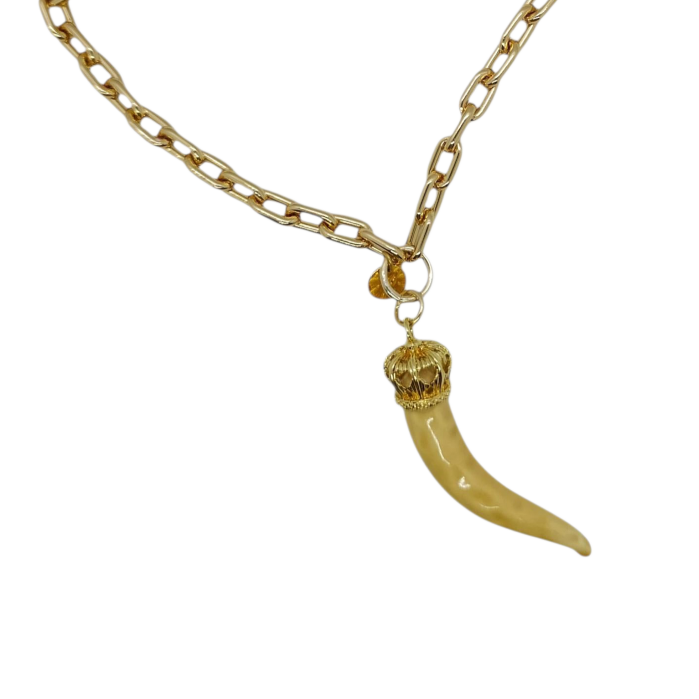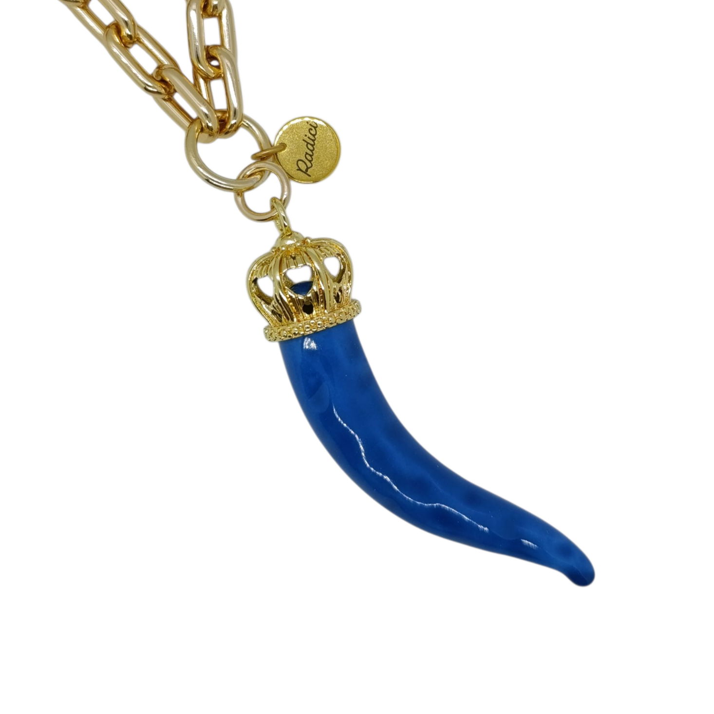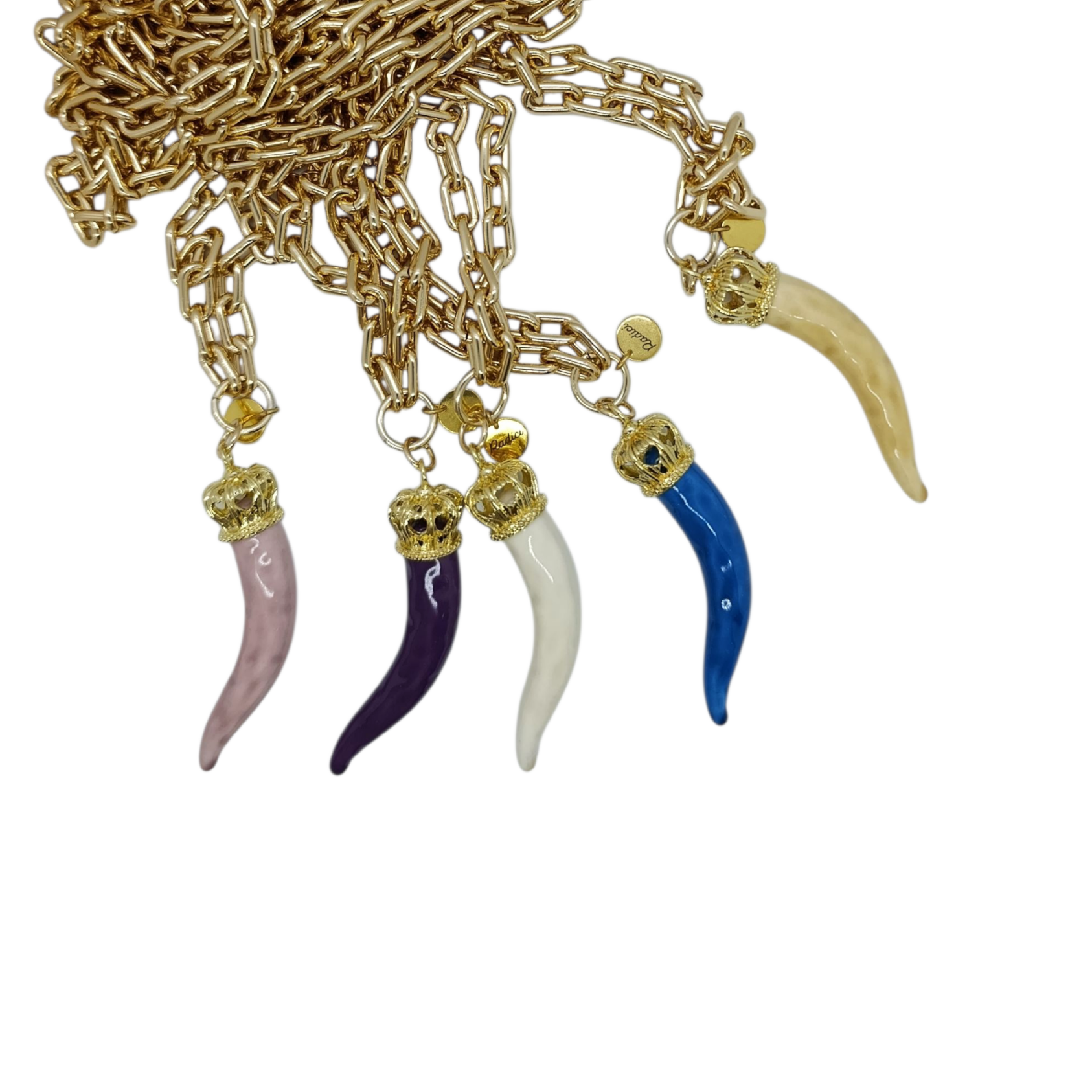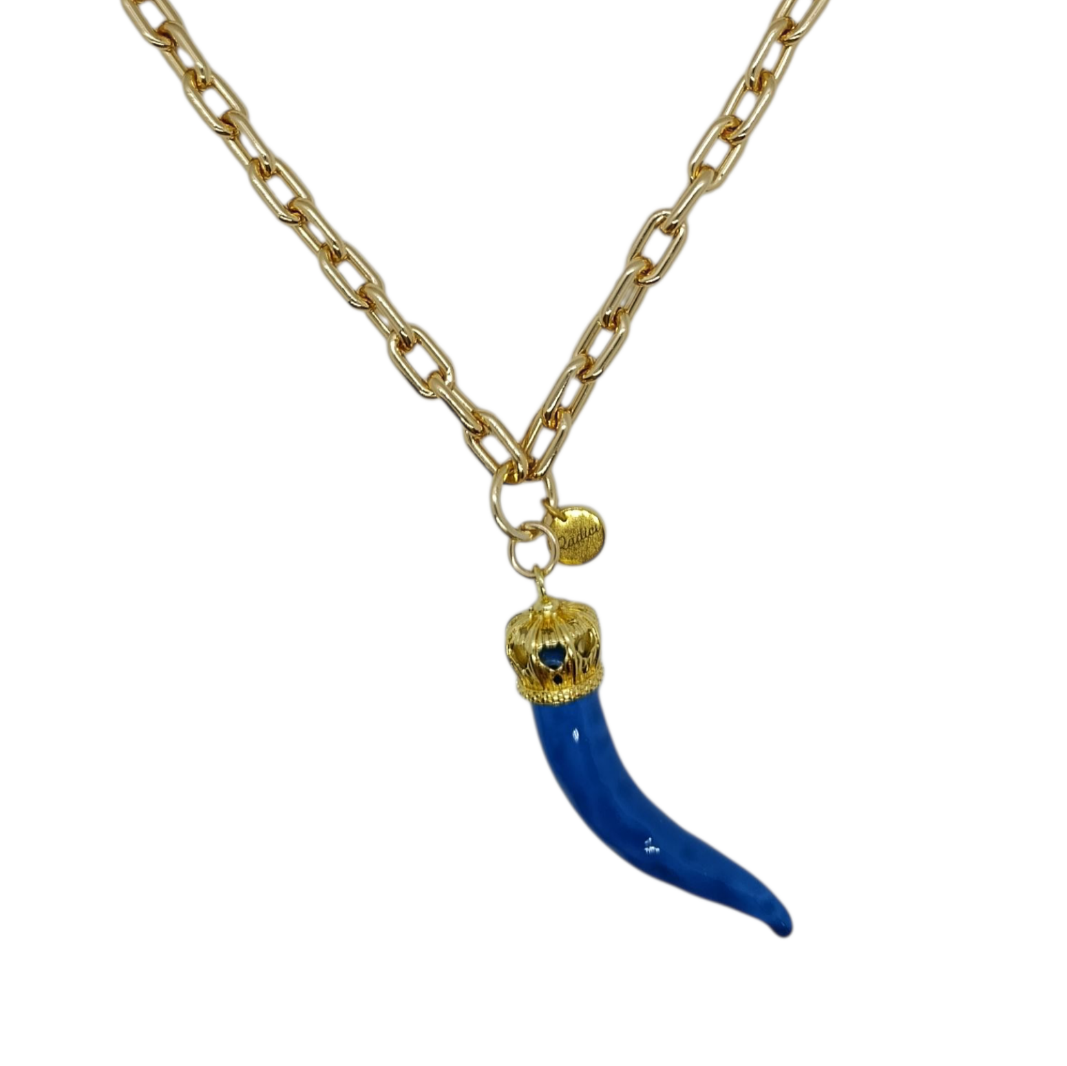 Il corno, simbolo iconico di buona fortuna e protezione, rende questa collana non solo un gioiello di tendenza, ma anche un portafortuna sofisticato.