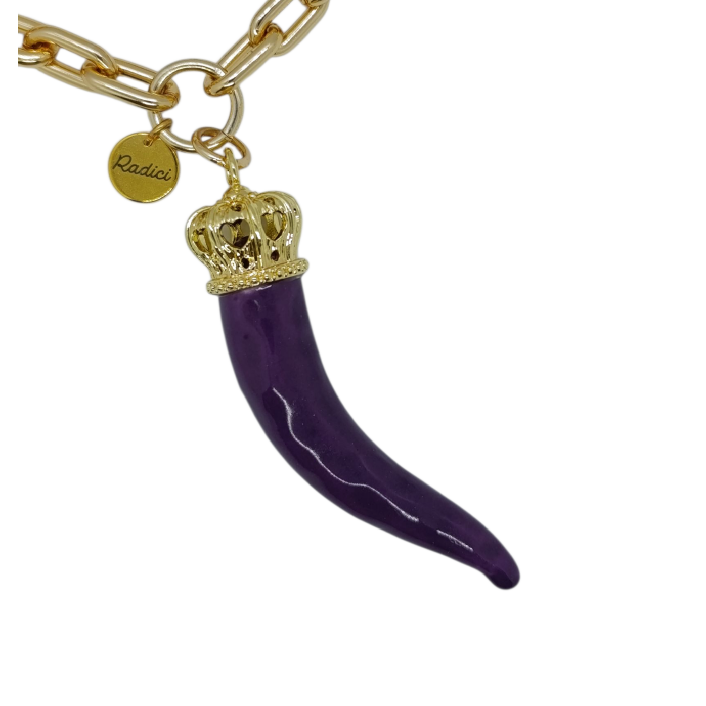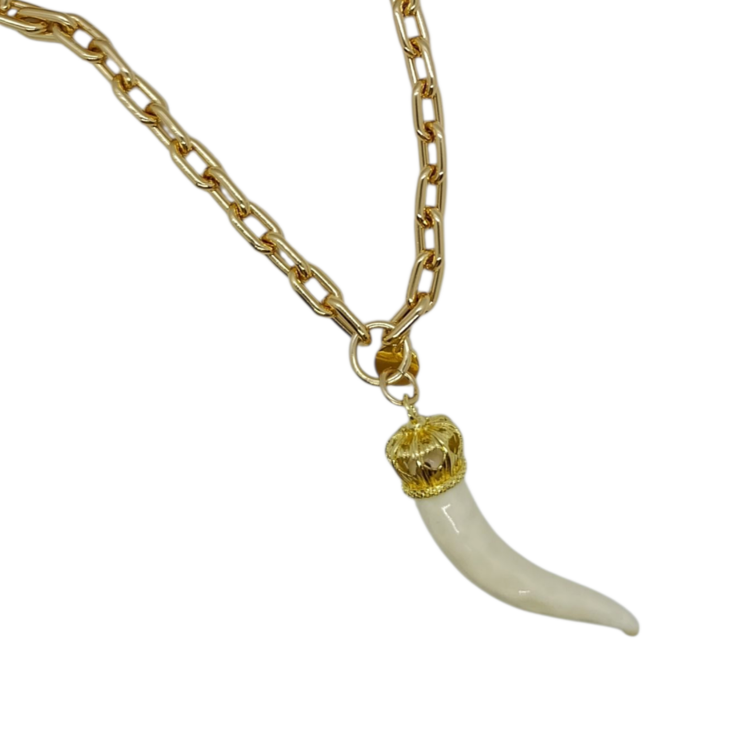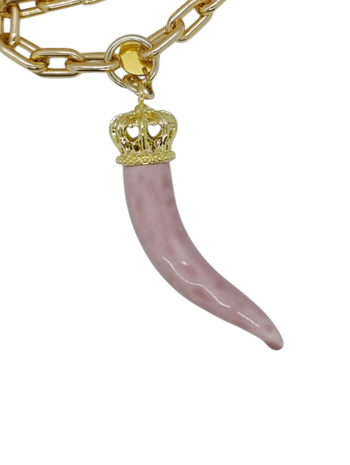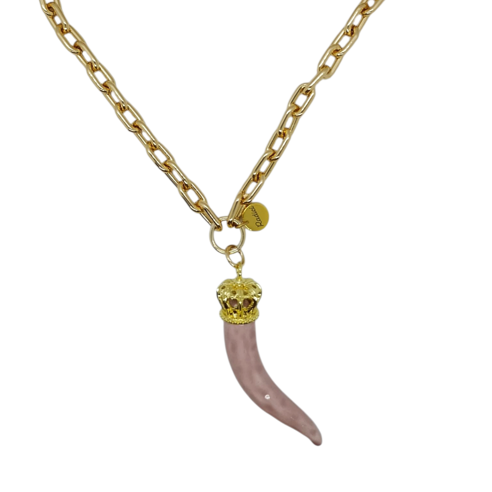 Il corno, simbolo iconico di buona fortuna e protezione, rende questa collana non solo un gioiello di tendenza, ma anche un portafortuna sofisticato.